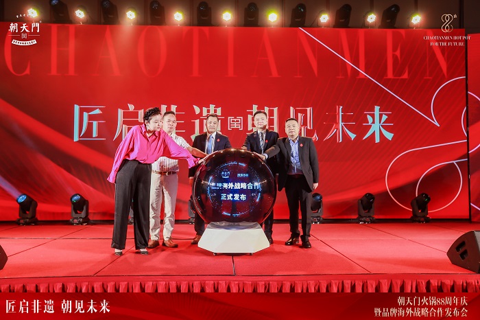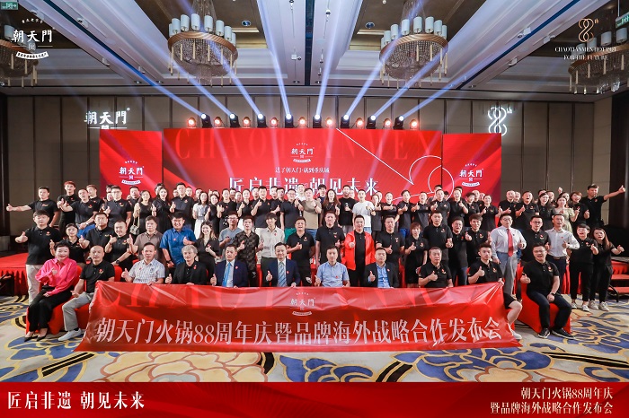 2023年8月8日,朝天門餐飲控股集團(tuán)旗下品牌朝天門火鍋“匠啟非遺朝見(jiàn)未來(lái)”88周年慶暨品牌海外戰(zhàn)略合作發(fā)布會(huì)圓滿結(jié)束,朝天門餐飲控股集團(tuán)董事長(zhǎng)王普先生,西班牙蒙福食品公司董事長(zhǎng)莊鶴舉先生,朝天門集團(tuán)高管團(tuán)隊(duì),西班牙、法國(guó)、意大利等海外嘉賓,全國(guó)各省市的代理商、區(qū)域加盟伙伴,香港、臺(tái)灣嘉賓相約參與本次慶典,共赴這場(chǎng)非遺火鍋的全球之約。